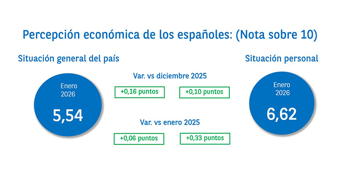 El último «Barómetro de Consumo» del Observatorio Cetelem, correspondiente a enero de 2026, revela que los españoles siguen valorando mejor su situación personal, con 6,62 puntos sobre 10, que la situación general del país, con 5,54 puntos.