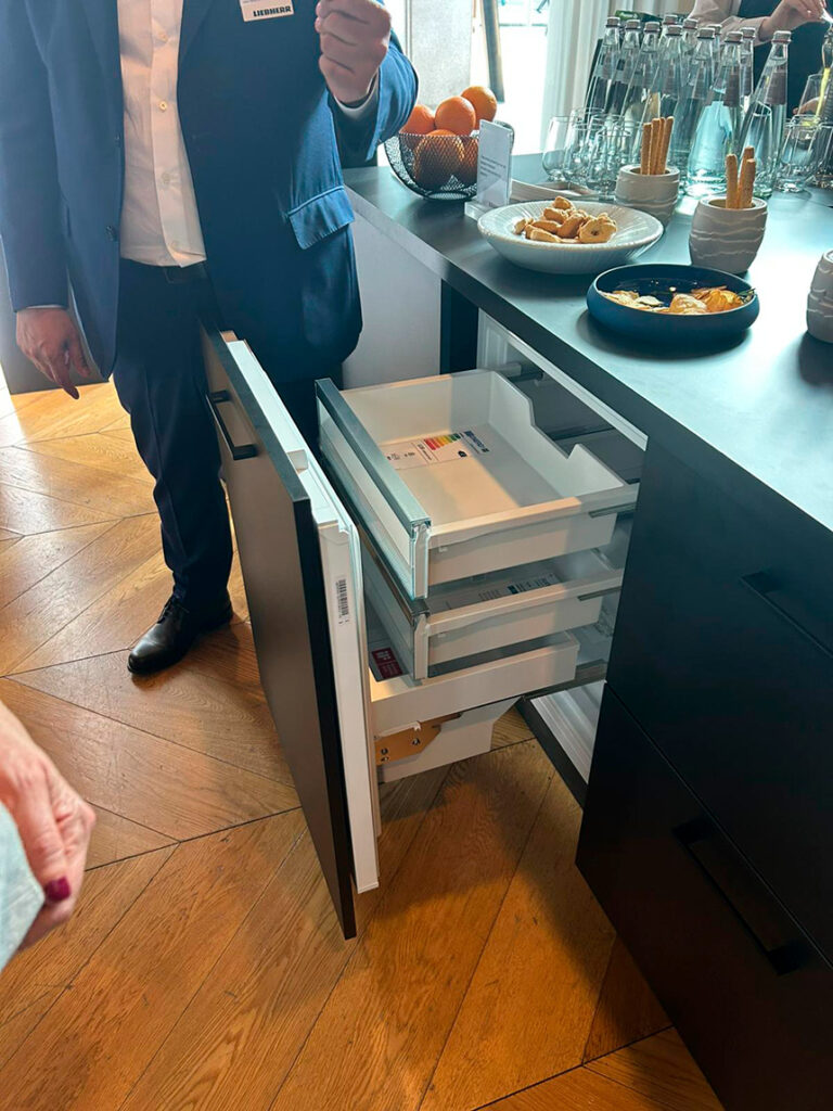 Uno de los pilares de la presentación es la iluminación, entendida como parte esencial del diseño. No se trata solo de ver mejor el interior de un frigorífico, sino de mejorar la experiencia de uso, guiar la atención y optimizar la eficiencia energética. Liebherr subraya su papel en la definición de materiales, en la creación de atmósferas y en la mejora de la eficiencia. Sistemas como torres de luz LED o iluminación adaptativa permiten una visibilidad completa del interior, incluso cuando está lleno, al tiempo que reducen el tiempo de apertura de puertas y el consumo energético.