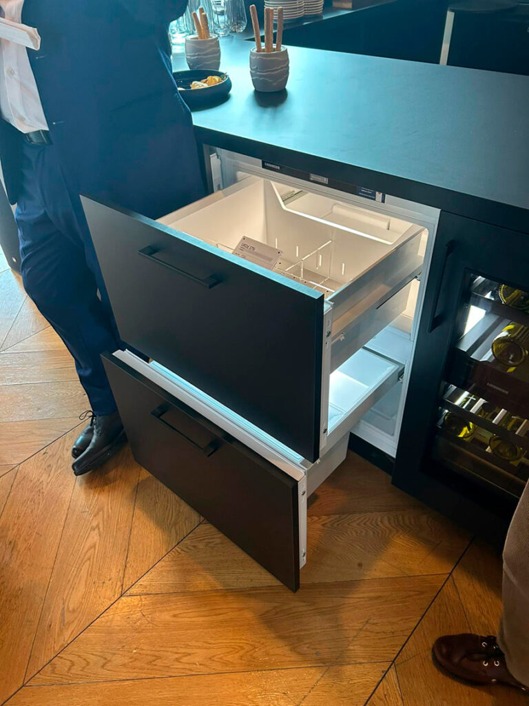En términos de diseño Liebherr apuesta por líneas limpias, eliminación de tiradores y sistemas de apertura automática —incluso mediante control por voz— que permiten una integración total en el mobiliario. El objetivo es que el electrodoméstico desaparezca visualmente y forme parte de la arquitectura del hogar.