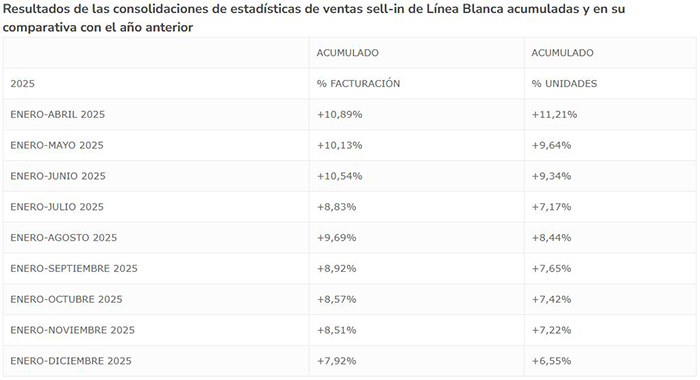 –La gama blanca, al alza en la primera mitad de 2025
